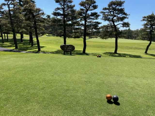 今日のグリーンはCグリーンで使用ティは青です。