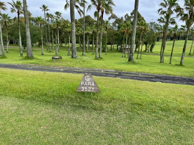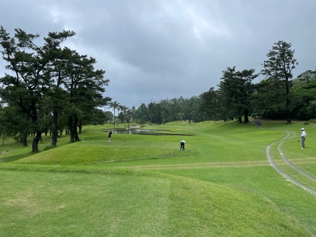 1番411y景色が綺麗なミドルは、ドライバーは右へ。OBです。打ち直しはショボ。結局、5オンから3パンチまでついて8スタート。見事な2オンからR.Sさんが無難にパー。