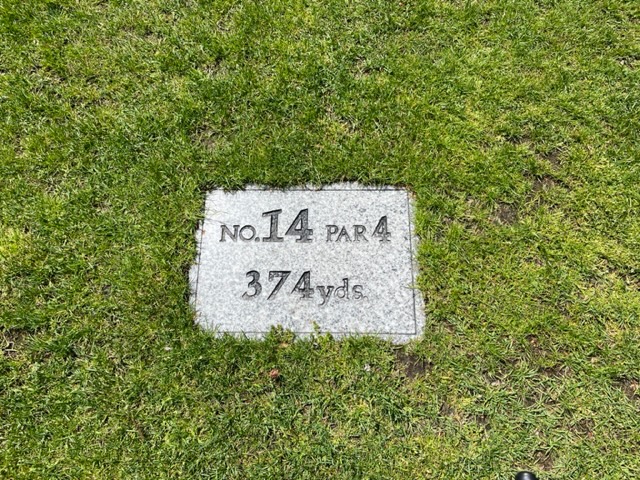 14番403yミドルは、ドライバーはドンピシャ球。が、52度でのセカンドが左へ。寄せたがパターがショボ。