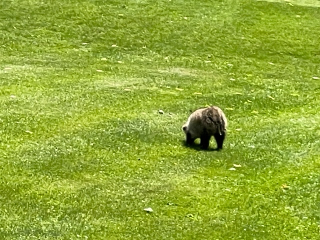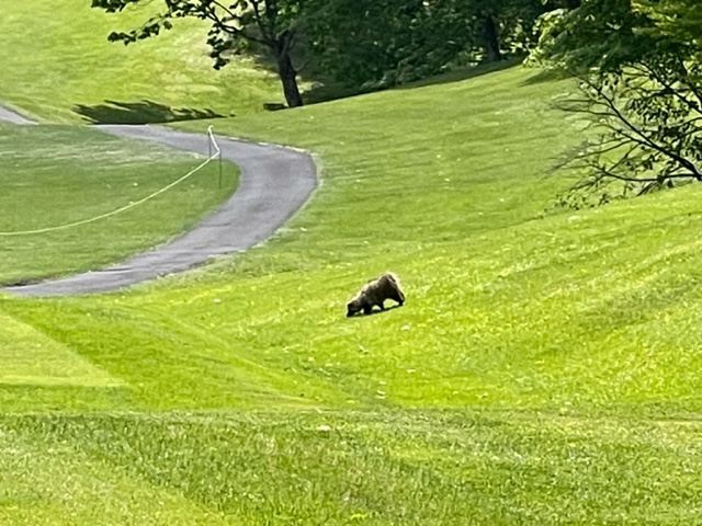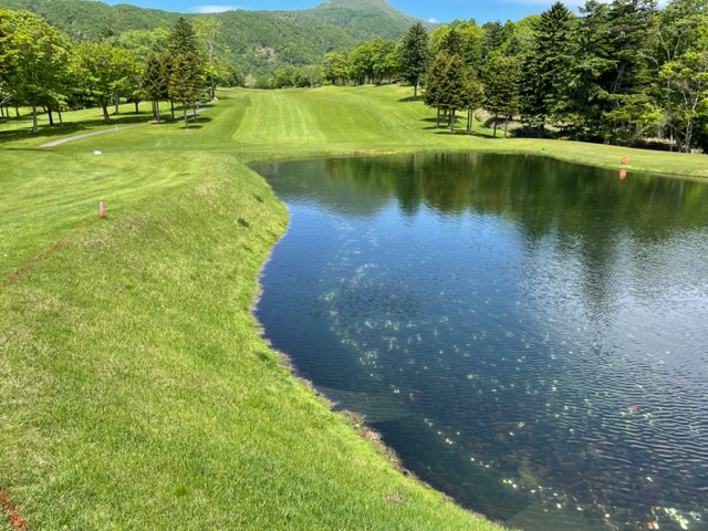 5番605yロングは、ドライバーは左ラフへ。3wでのセカンドが左へ。8アイアンで打つもトップ。水切りショットとなったが、最後に傾斜でバックスピン。ガクッ。ドロップして5オン。ダボ。