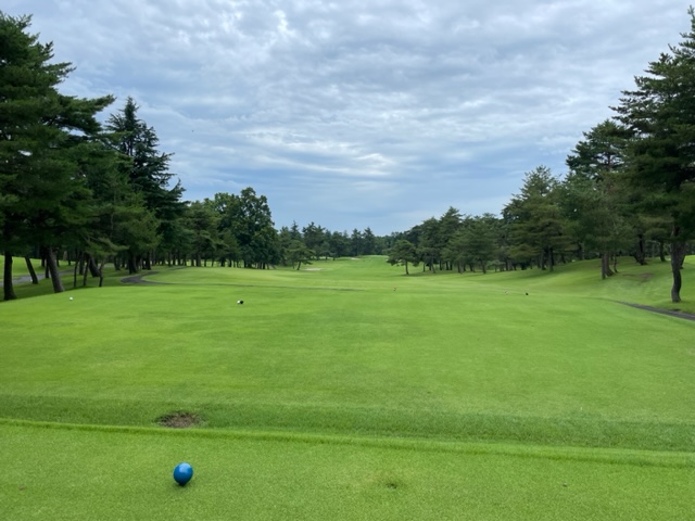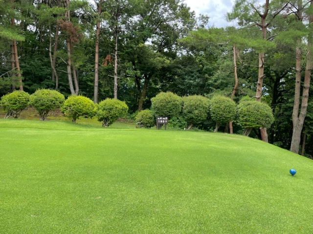到着後、レストランはやっていないので、コーヒーラウンジで4名ほどでミーティングです。その後、パターを転がして東から。長岡は東西南からなる27ホールゴルフ場ですが、東西は上田治氏設計ですが、南は違うようです。