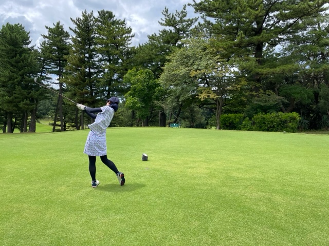 1番ミドルは竜巻球でOB。打ち直しはまずまずでダボ発進。