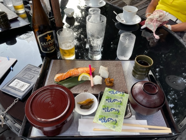 6時半の受付開始とともにコース入り。ここも到着順があるのがありがたいです。今日もテラスで朝食を頂きます。ここのテラス席もなかなかであります。残念なのはキャディがいないこと。今日はB月例の日ですから、特につきません(笑)。