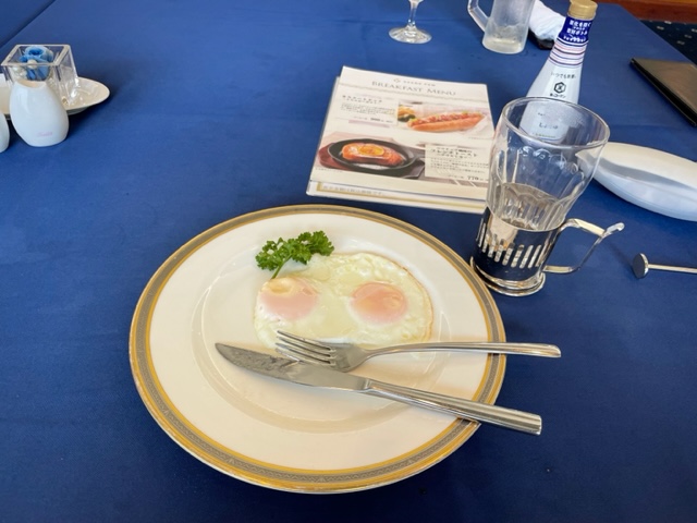 まずはレストランへ。今日は目玉焼きとドリンクで済ます。