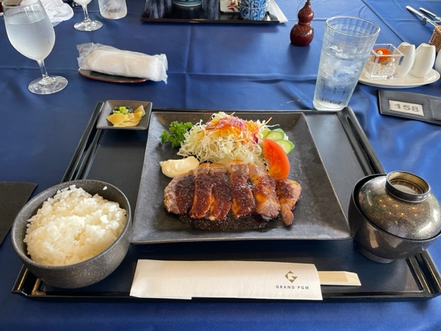ランチは、豚テキみたいなのを食す。まずまず。