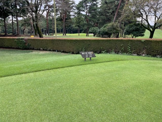 14番ロングは、ボギー。見事な3オンからJ.Oさんが無難にパー。また、ナイスアプからK.Kさんもパー。