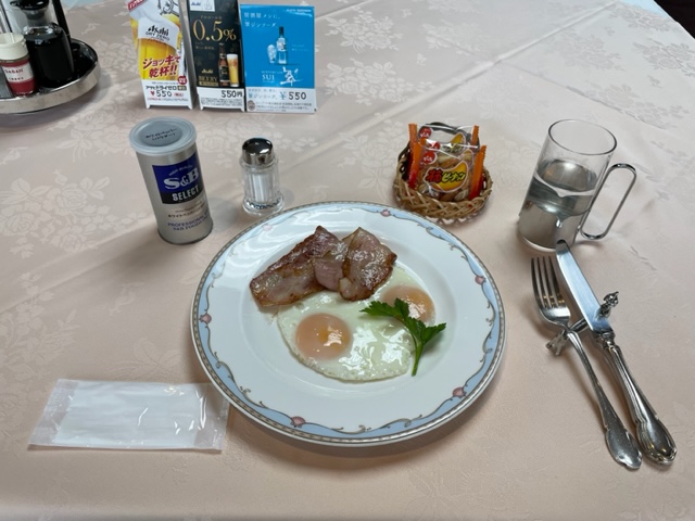 まずは到着後、レストランへ。ハムエッグを食しながら独りミーティングします。
