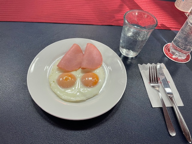 到着後、レストランに行き、縁の会員さんS.Mさんと合流し、ハムエッグを食す。