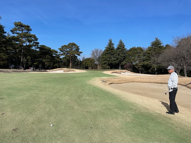 3番ショートは、チョロからバンカーインの5となる。レジェンドK.Kさんが4アイアンで奥に付けながらナイスアプでパーで鉄竿ベスト獲得。スゲー76歳だよ。信じられません。