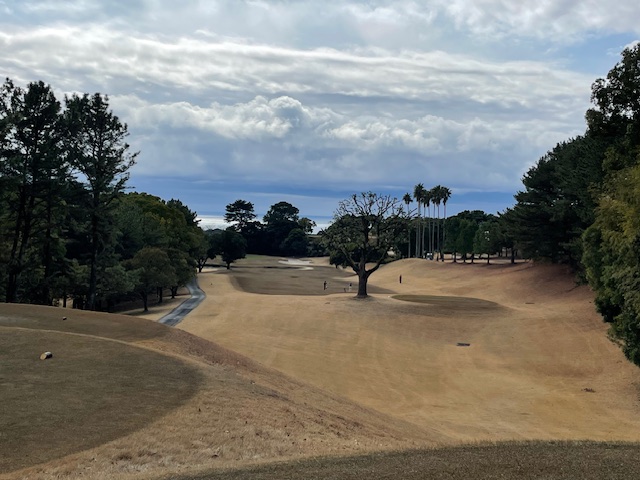 7番ショートは、ダフッて手前の崖下へ。打ち直してやっとのダボ。