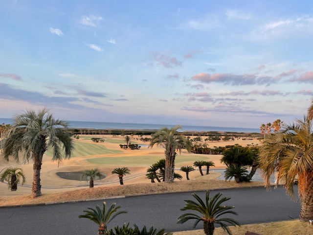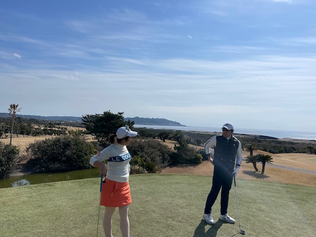 朝一でグリーンジャケット生電話を終えて、支度をして館山カントリーに到着。朝食をいただき、今日は小竹莉乃プロとご一緒していただきます。今日も勝負を挑んでみます。東のバックから。今日は3サム。