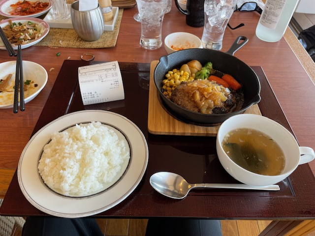 ランチは、皆様が美味い旨いとおっしゃっていたハンバーグを頼む。まずまずですかね。