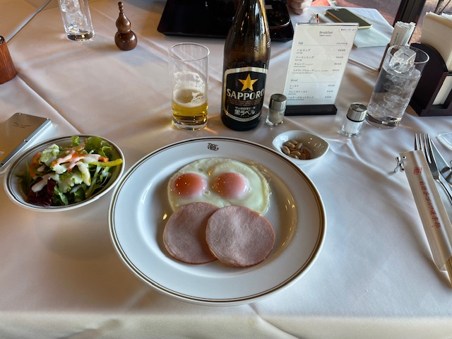 まずは、到着後、T.Tさんといつものようにハムエッグとさつま汁をいただきながら歓談しておりましたら、H.Yさんがお越しに。3者談義です。