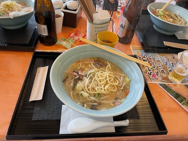精算を済ませて、下の温泉宿である湯快リゾート東洋館へ向かいました。ちゃんぽんを食して瓶ビール飲んでこれで8600円は安いよね。