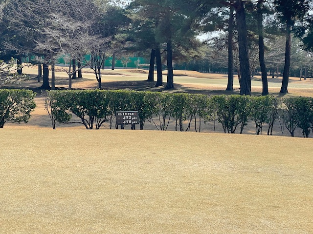 18番ロングは、ドライバーはナイスもセカンドが大きく右へ。チョン出し。やっとのパー。
