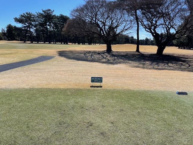 10番左ドッグのロングは、ドライバーがバンカーイン。3打目でオンできず。ボギー。