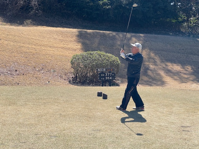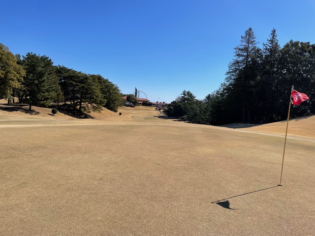 10番短いミドルは、セカンドがナイスで2mに。沈めてナイスバーディ。会員の縁のH.Mさんがナイスアプからパー発進。