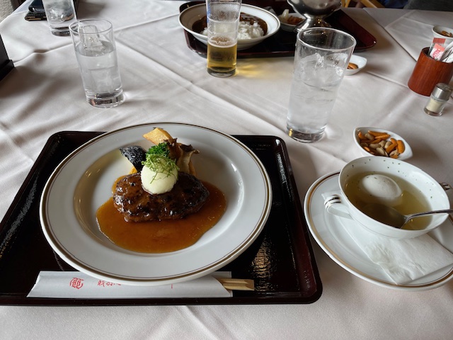 ランチは、今日はハンバーグを食す。1300円と安価ですが、実に美味い。