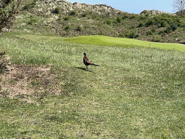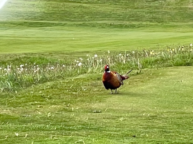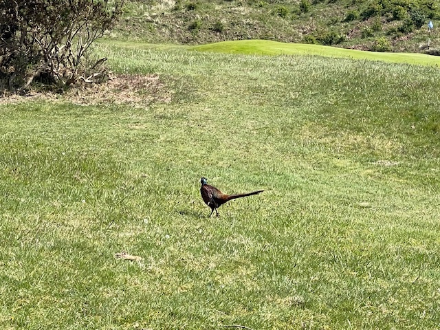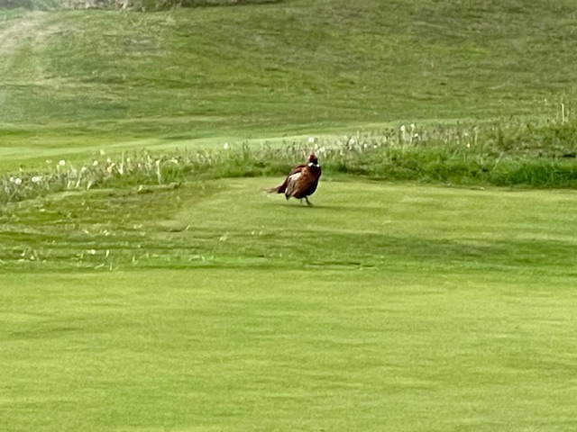 その後、パターを転がして、スタートと思いきや、キジがどんどん近づいて来ます。怖くないのかな?