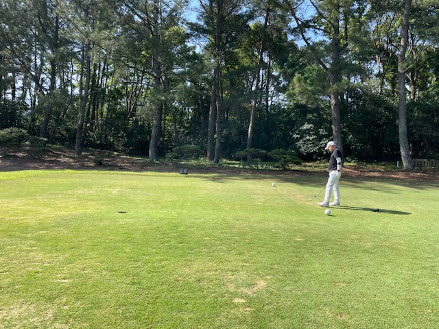 5番ミドルは、2.5mに2オンからアホの3パンチ。しっかり7mに2オンのM.Tさんは無難にパー。