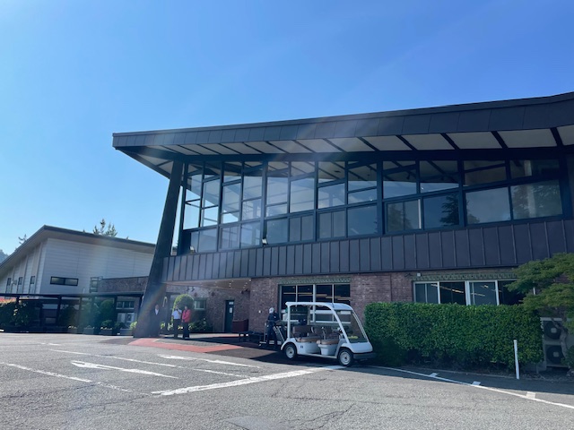 グリーンジャケット登場後、一路、津久井湖へ。なんと、ここでのプレーも初めてですが、ここのクラブハウスに来たこともないコースです。クラブハウスには大概のコースに行っている私ですが、とにかく初めてのゴルフ場です。