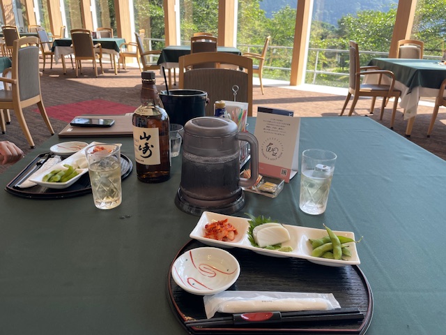 到着後、縁のH.Hさんと一緒にN副支配人と歓談タイム。いろいろとご教示いただく。その後、着替えて、レストランへ。で、ハムエッグを食しながら、二人ミーティング。その後、T.MさんとM.Aさんが合流。お二人ともグリーンジャケット聴いて来られたそうな。ありがとうございます。