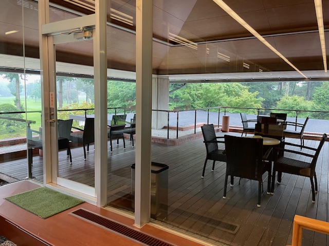 まずは、着替えず、到着が一緒だったA.Sさんんとレストランへ。いつものハムオムレツを食す。お世話になる会員のK.Sさんもお越しに。で、とりあえず、出ようとなる。ここは雨に超強いゴルフ場ですからね。今日も検分しましょう。