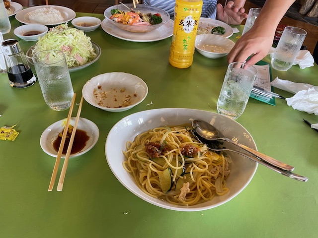 ランチはパスタを食す。つまみも数点。つまみがナイスである。またまた格言が。「あの鹿、生きてるみたいですね!」にマエシンは「〇ちゃん、いや、全然生きているように見えないけど」にK.Yさんが大笑い。