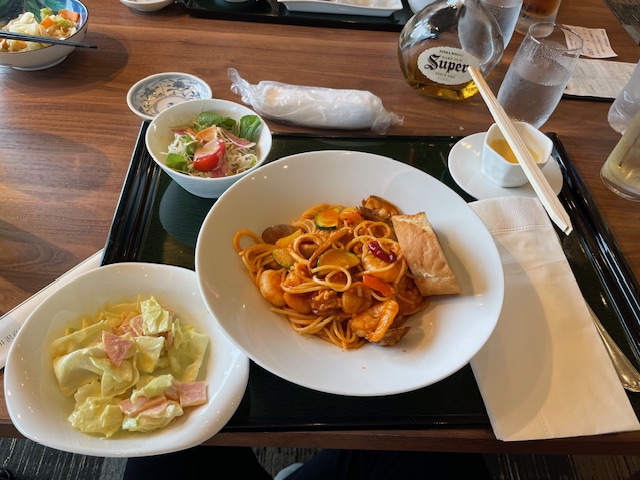 ランチは、トマト味のパスタを食す。なかなかグー。つまみも数点頂いたが、どれも美味い!