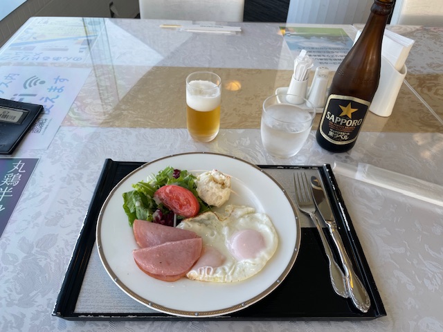 その後、レストランへ。ハムエッグを食しながら、サクッと独りミーティング。