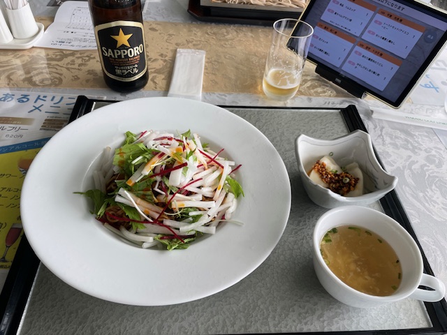 ランチは、汁なし冷やしタンタンメンを食すも、これがまずい。半分で残しました。