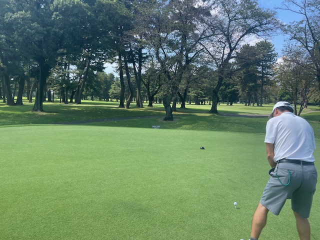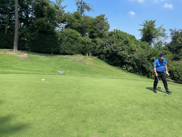 6番374yミドルは、ドライバーはフェアウェイへ。8アイアンでピン奥2mに2オン。が、この絶好のチャンスを逃す。あーあ。同じくナイス2オンからS.Mさんも無難にパー。