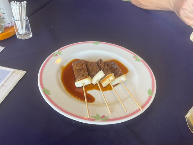 ランチは、牛串焼きやらイカタコ揚げやらピラフやらをいただく。皆、ナイス。味もナイス。