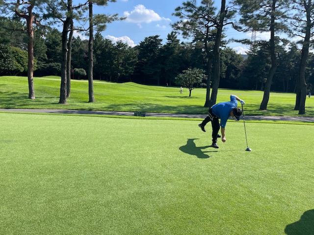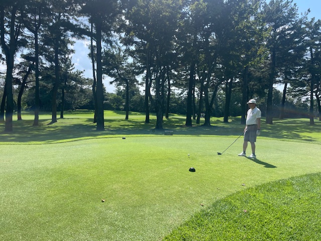 パターを転がして東から。今日は黒ティで進行します。