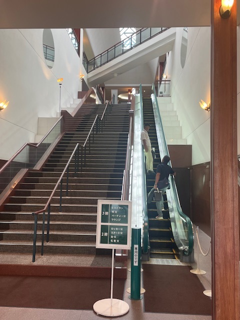 受付して、ロッカーがある2階までエスカレーターで上がります。ゴルフ場にエスカレーターがあるゴルフ場は初めてです。(ある方からの情報であとで知ったが、飯能くすの樹にもありました)