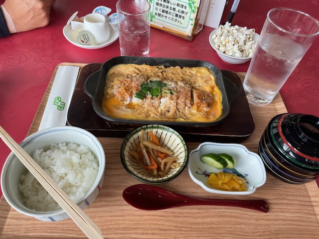 ランチは、今日はカツ煮御膳を食す。まずまず。