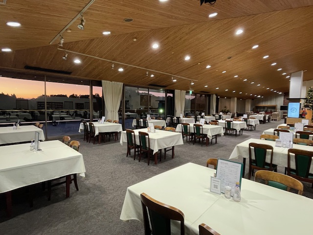 前日はロッジに宿泊。6時からレストランもやっているというので、行ってみました。支配人も朝玄関でご挨拶をされてました。で、レストランへ。1番乗りでした。前日美味しかった和朝食をいただきます。
