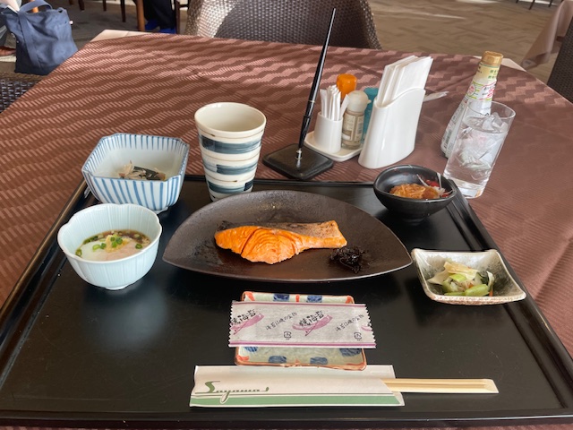 レストランでじっくり朝食タイムです。至福の時を感じます。その後、Y.Iさんも合流され、二人ミーティングです。その後、最終組でスタート。今日はAグリーンでティは青から行きます。