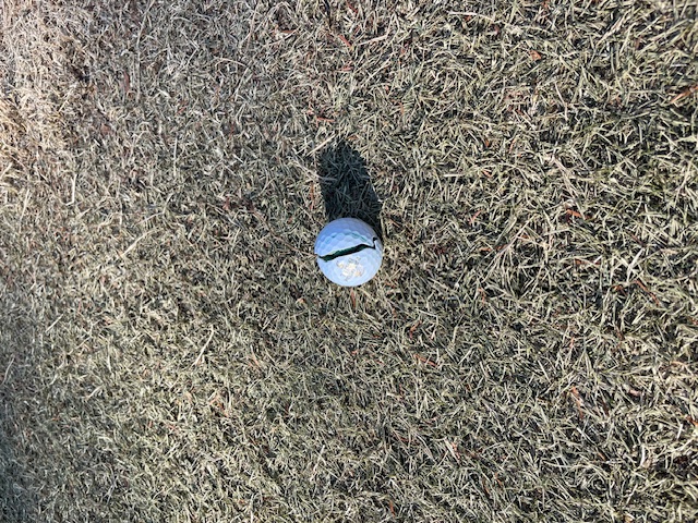 10番ロングは、ドライバーがなぜか140yほどしか飛ばず。行ってみたら球が割れてポッカリ。18年ほど保管していた(笑)ニューイングを今年から使っていたが、ダメみたい(笑)。先日のザ・竜の時もこれの軽め症状が出ていて、キャディさんから使うのやめな!って言われていたが。。。4オンからボギー。