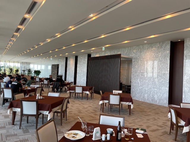 到着後、着替えて、レストランへ。今日は総勢7名でのゴルフです。
