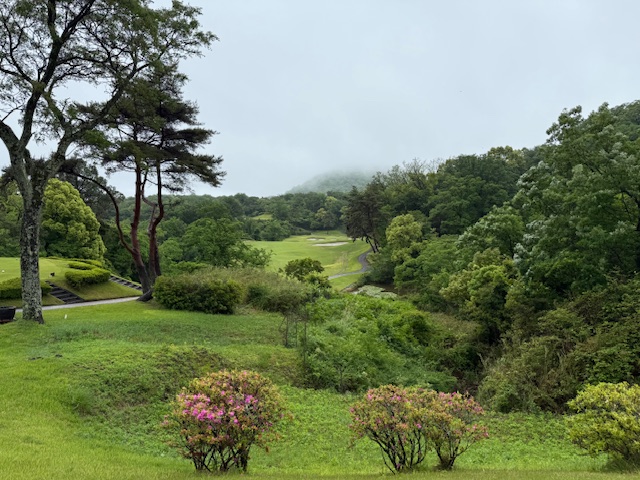 ジャンジャン降りの中、宝塚ホテルからタクシーで宝塚ゴルフ倶楽部に来場。ビックリしたのは、この天気で車の数が凄い!ハウスは風格が漂っています。幸い、お天気も10時には上がりそうな予感。