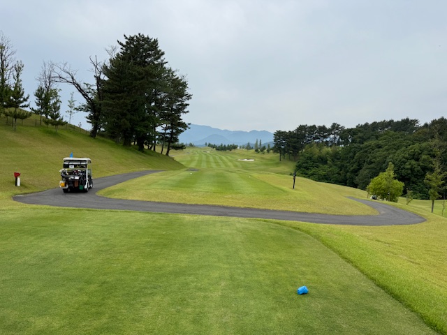さて、現在、厚木国際では西インの改造を致しております。ので、今日は西アウトと東アウトを廻ります。西のグリーンはAグリーン。ティは青ティです。