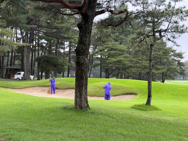 9時35分、合羽を着てスタート。今日は青ティでグリーンはCグリーン。
