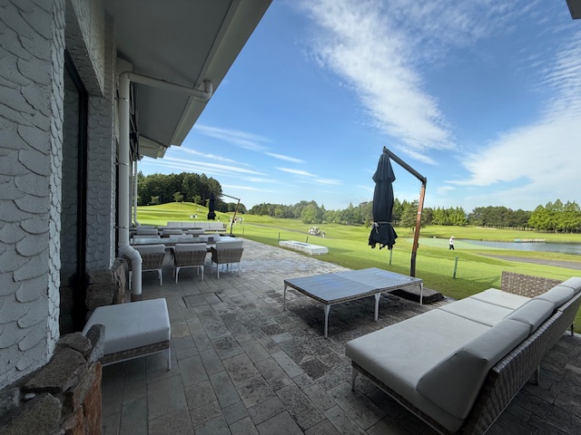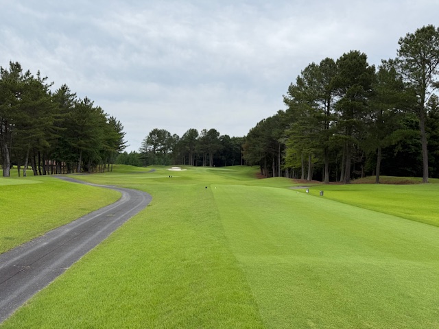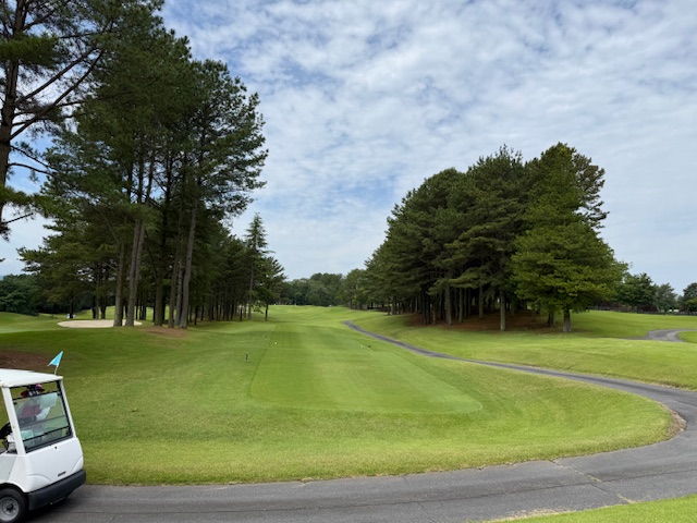 7番長い454yミドルは、ドライバーは左ラフへ。3wで残り50yへ。寄らず入らずボギー。ここをグリーン近くまで運ばれたM.Tさんがナイスアプでパー。
