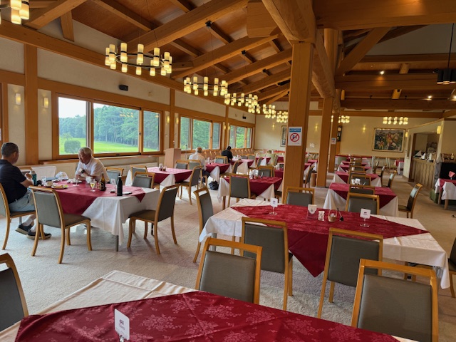 まずは着替えてレストランへ。もう縁のK.TさんとK.Kさんはお席に着いておられます。スルー(軽食をはさむ)で廻るそうなので黄金水と洋定食と単品ハムエッグを食します。