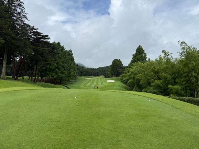 7番160yショートは、7アイアンで打つも右へ。寄らず入らず。見事な1オンから草野総支配人が無難にパー。