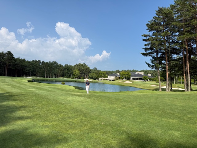 1番553yロングは、3打目を池に入れて5オン7発進、