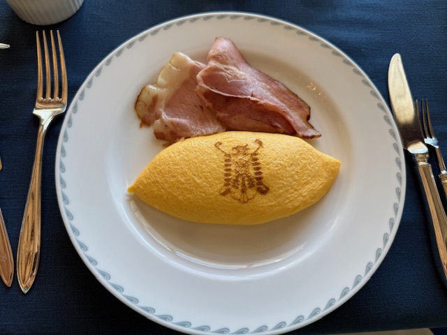 税別5000円の洋定食をオーダー。ここに来たら贅沢をしないと。卵料理はここではオムレツです。
