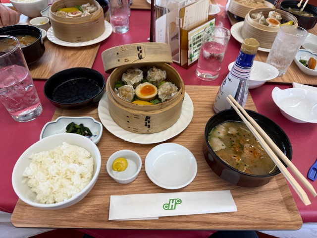 ランチはいつもの豚汁シューマイセットをオーダー。グー。