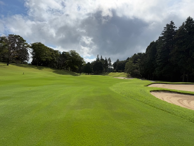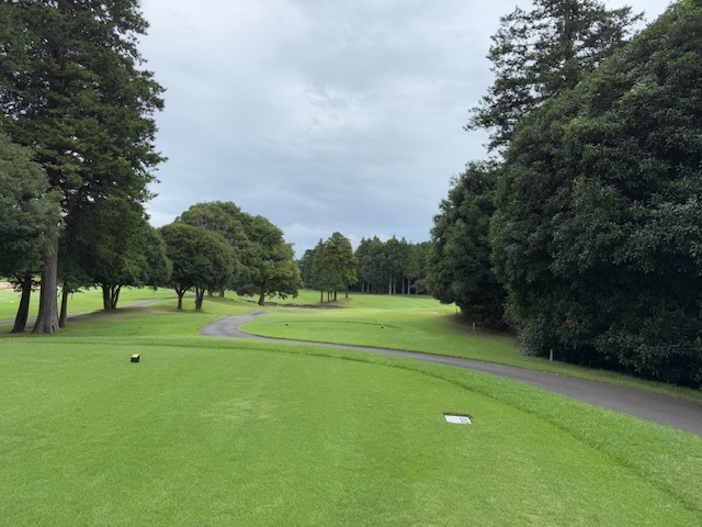 1番ミドルは、ドライバーは大きく右へ。4オンからダボ。ガクッ。見事な2オンからT.Yさんが無難にパー。